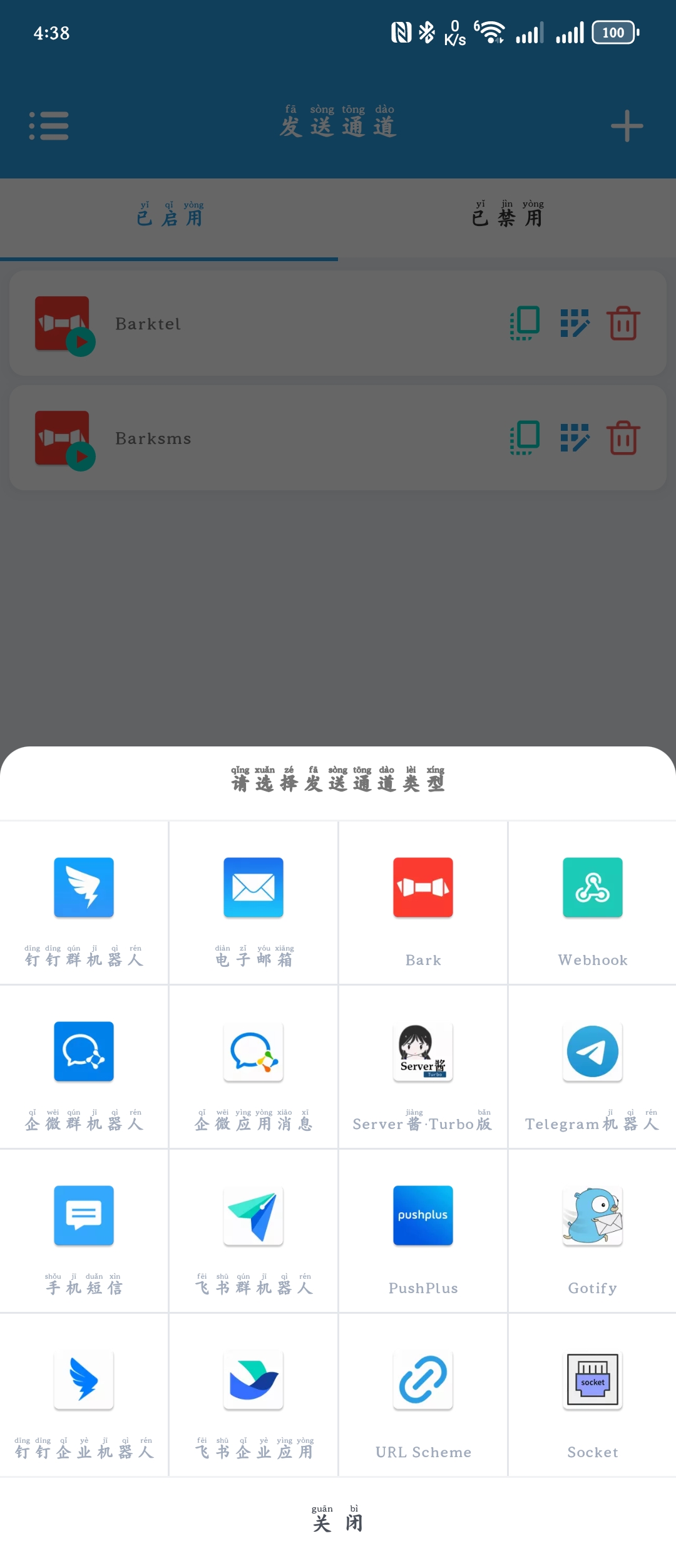 解决了软件转发问题以后,我们就可以开始使用转发了,但是,有一个问题就是,APP设置的时候,转发通道有很多,鉴于个人不使用钉钉等其他的软件,同时也没有购买Server酱的会员服务无法提供大量的信息转发(可能),所以我最后选择了在IOS被经常使用的Bark服务。